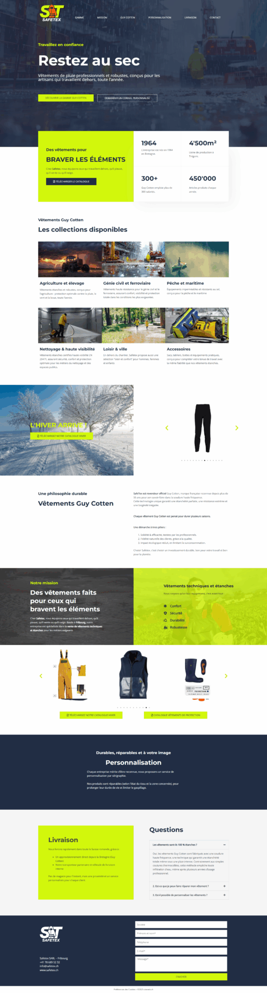 Pour Safetex, la conception du site vise à refléter la technicité, la robustesse et la fiabilité des vêtements professionnels. Nous construisons une interface structurée, axée sur la lisibilité, la performance et la comparaison des gammes.